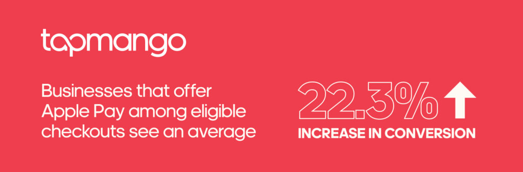 Businesses that offer Apple Pay among eligible checkouts see an average 22.3% increase in conversion.